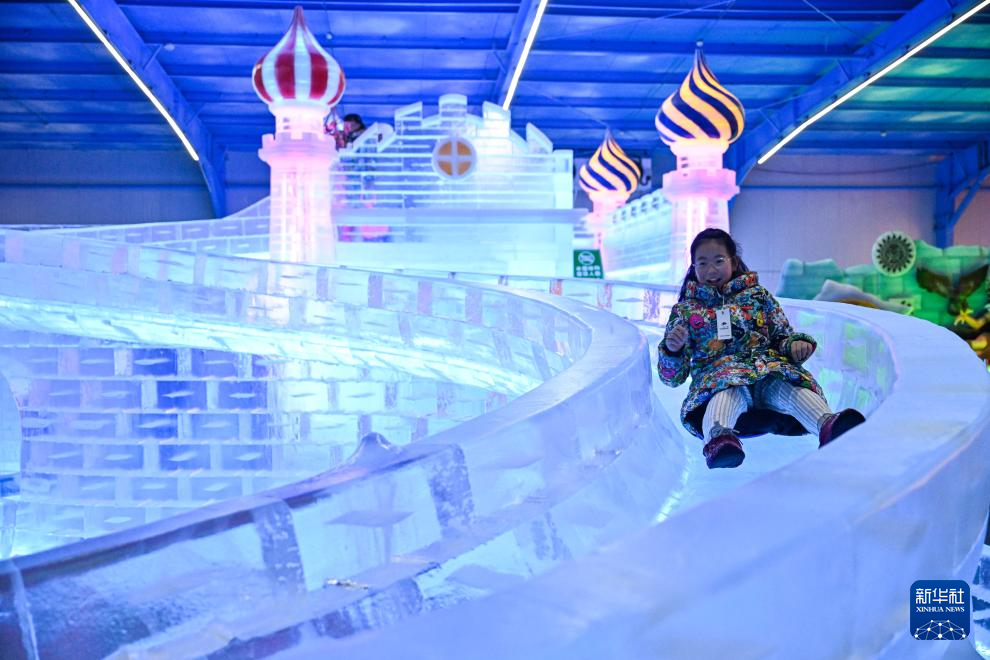 7月15日,小朋友在室内冰雪世界休闲娱乐。新华社记者 季春鹏 摄