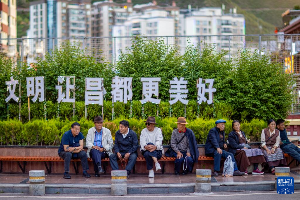 市民在昌都市茶马广场休闲(6月21日摄)。新华社记者 姜帆 摄