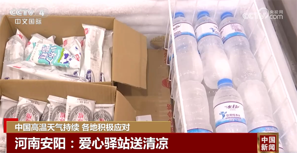 为应对高温天气,在河南安阳市滑县的一处户外劳动者爱心驿站内,空调冷风徐徐,饮水机、冰柜、应急药箱等设施一应俱全,驿站全天候开放,24小时为户外劳动者提供服务。