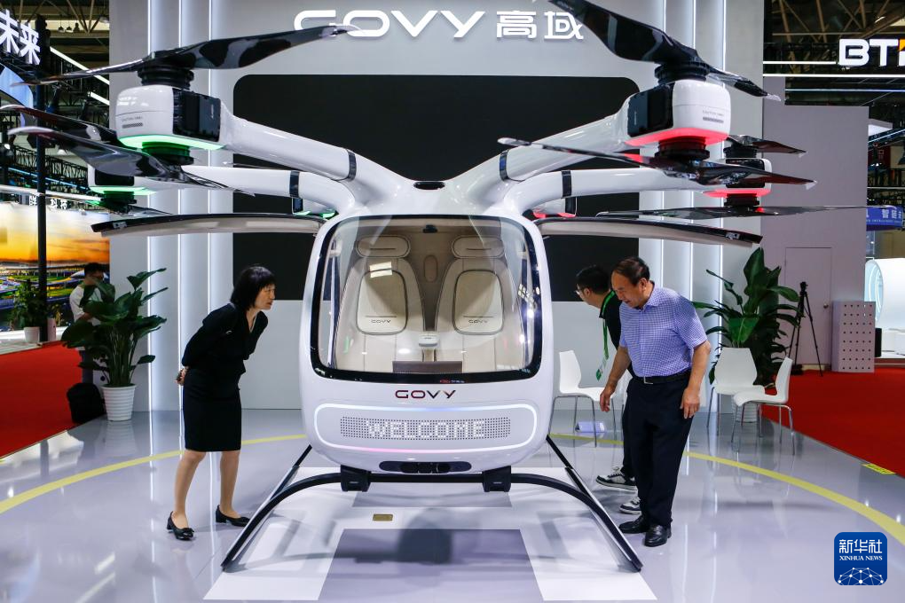 7月16日,参会者在智能汽车链展区高域展位了解一款低空飞行器。新华社记者 丁洪法 摄