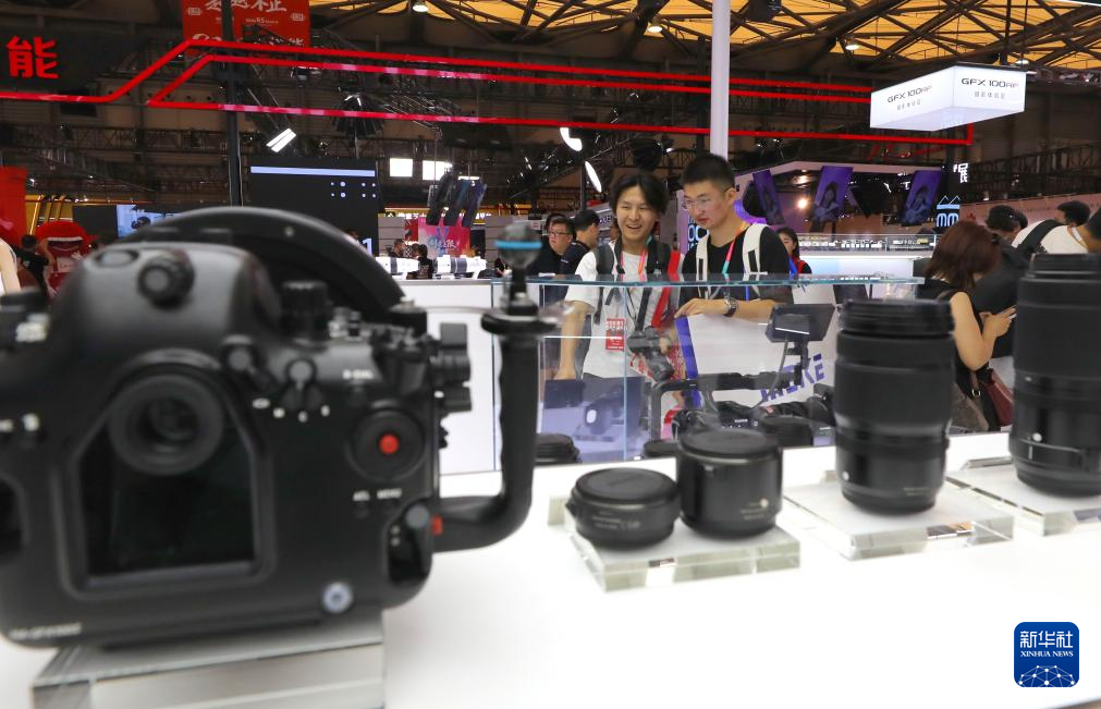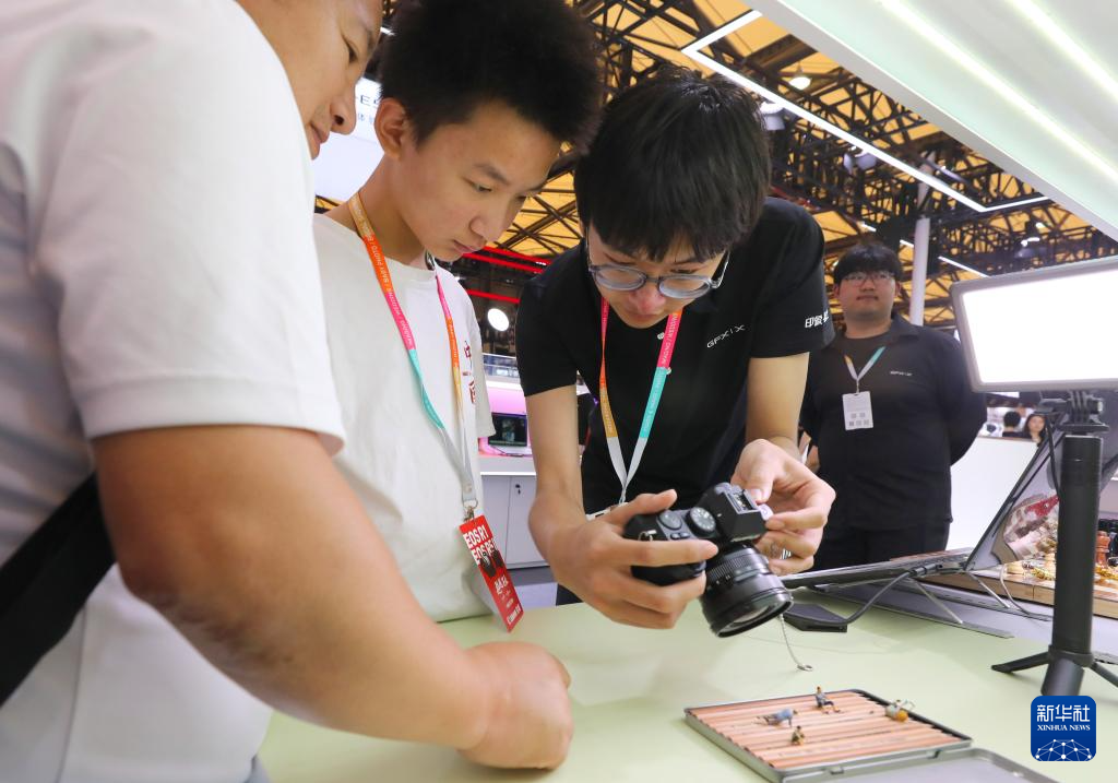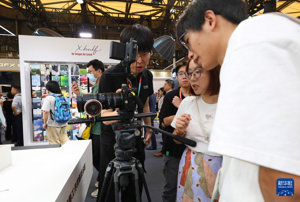 7月17日,摄影爱好者在展会现场进行动态影像拍摄体验。新华社记者 方喆 摄