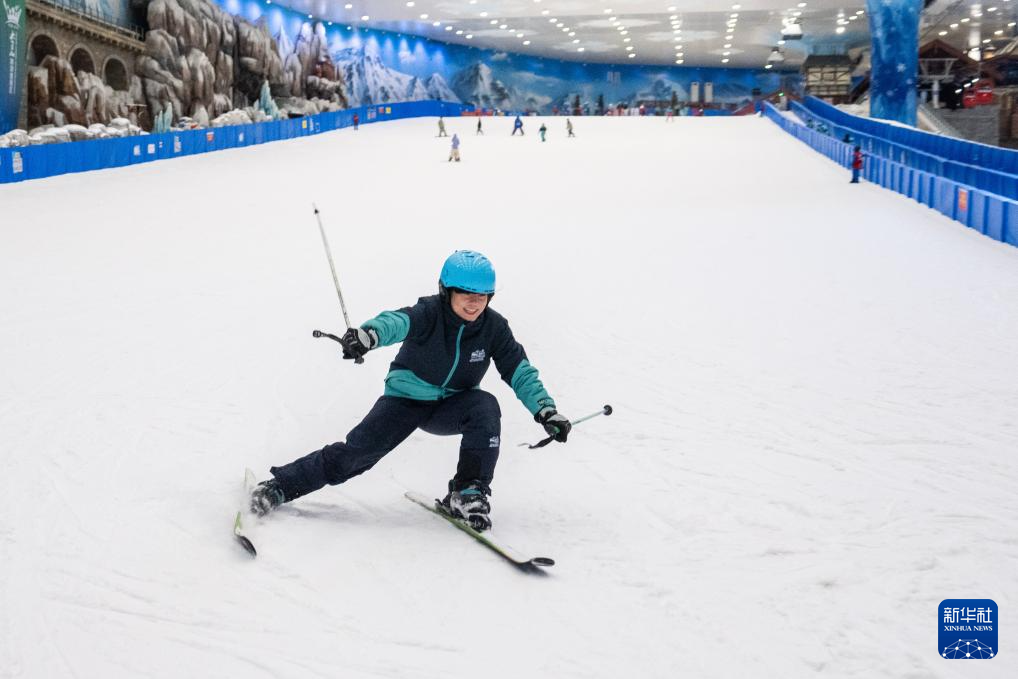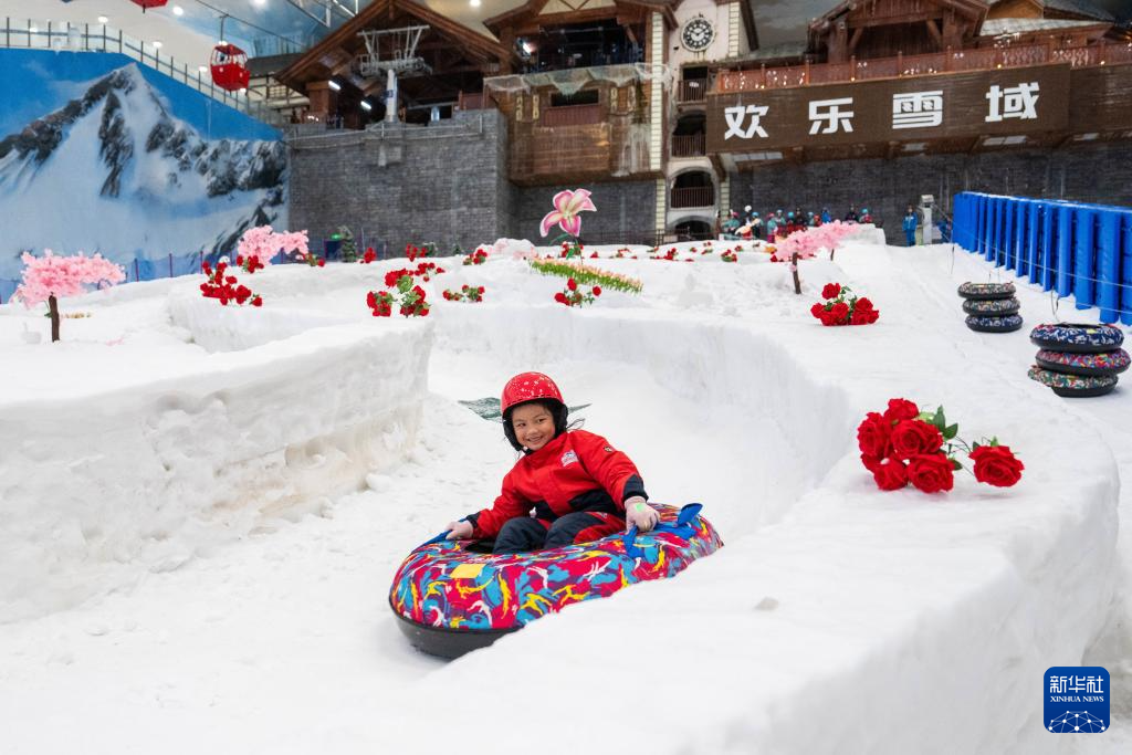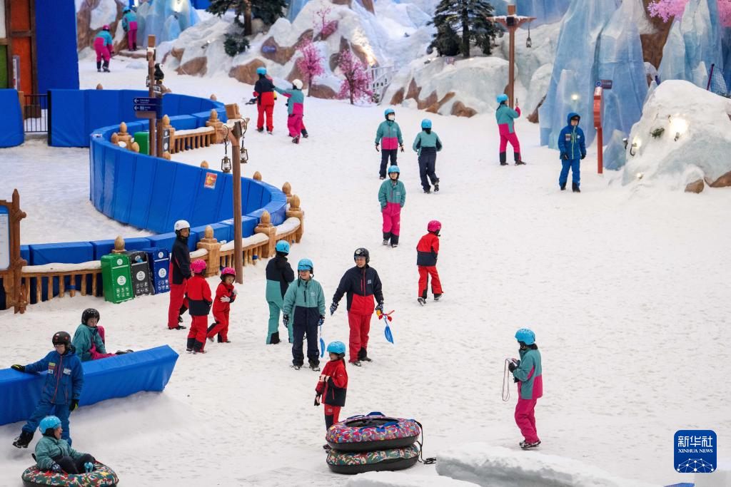 7月17日,湖南长沙发布当地今年首个高温红色预警,部分区域最高气温升至40℃以上。位于长沙大王山旅游度假区的湘江欢乐城欢乐雪域迎来众多游客。据了解,这是湖南最大冰雪综合体之一,深入地下36米打造,温度常年保持在零下5℃左右,拥有3万平方米的滑雪与娱雪区域,能为游客带来“夏日玩雪”的奇妙体验。