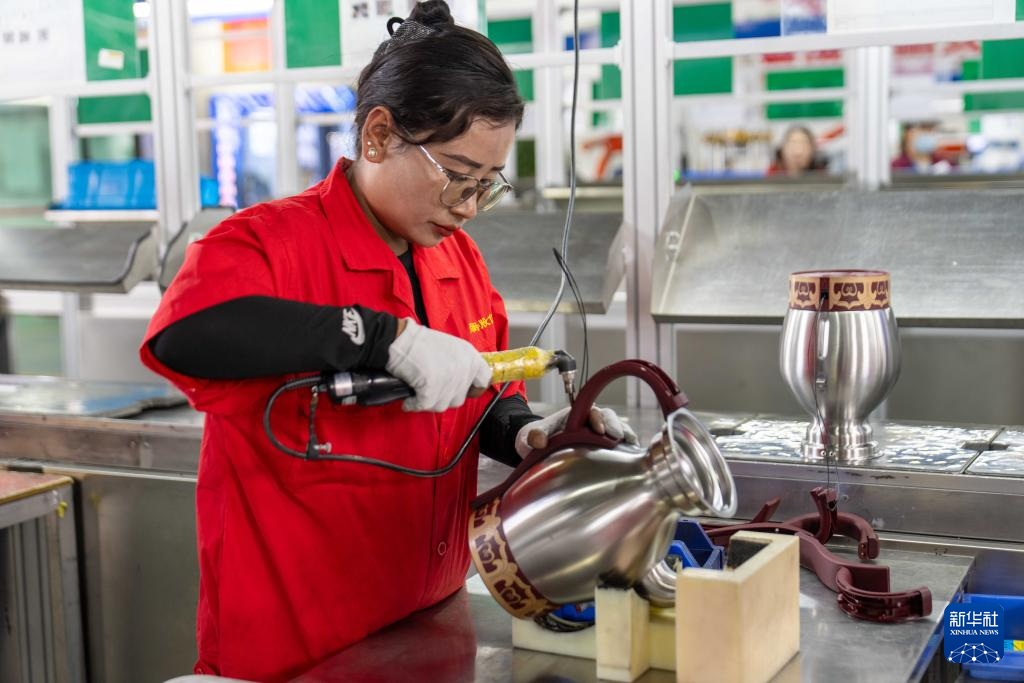 7月17日,西藏某炊具公司员工在生产高原炊具。新华社记者 旦增尼玛曲珠 摄