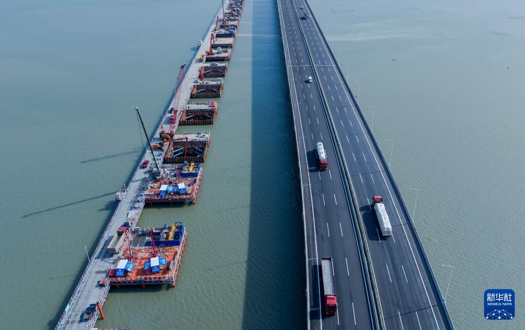 这是漳江湾跨海特大桥主栈桥(7月16日摄)。新华社记者 魏培全 摄