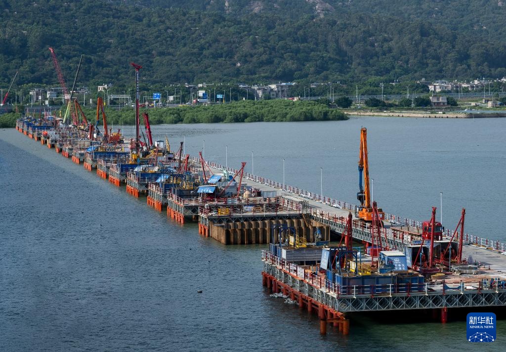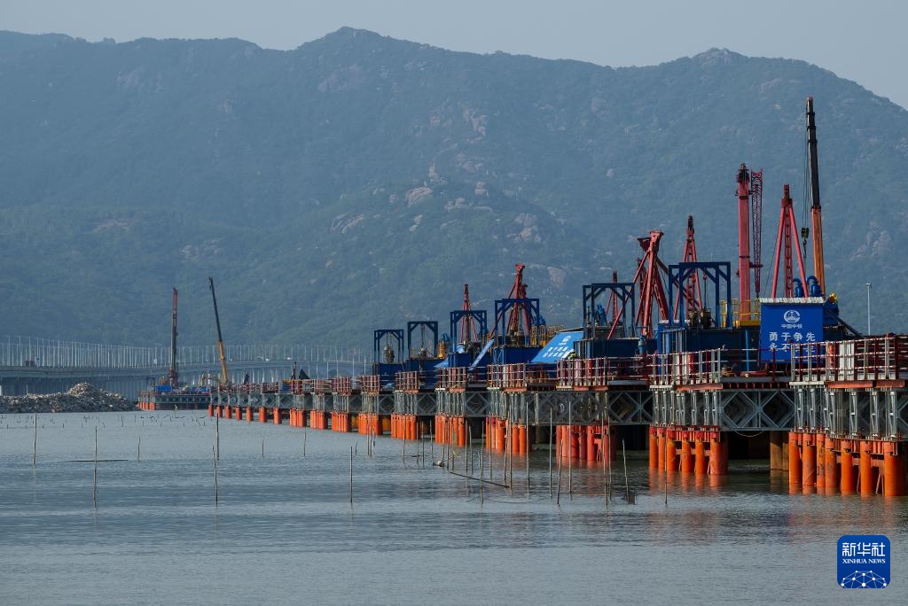 这是漳江湾跨海特大桥主栈桥桩基施工现场(7月16日摄)。新华社记者 魏培全 摄