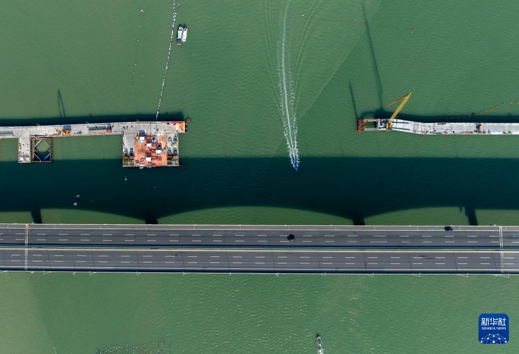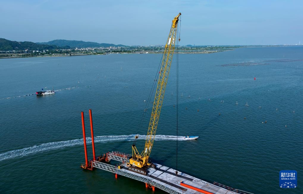 这是漳江湾跨海特大桥施工现场(7月16日摄,无人机照片)。新华社记者 魏培全 摄