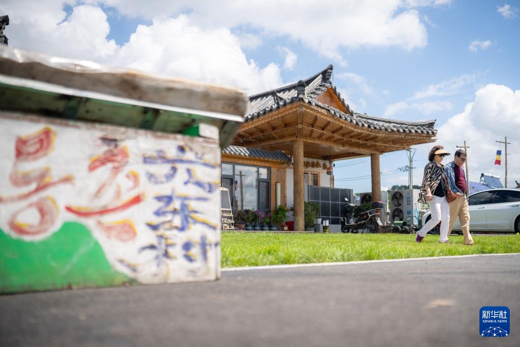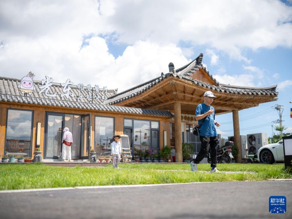 7月18日,游客在吉林省和龙市光东村内观光游览。新华社记者 邵泽东 摄