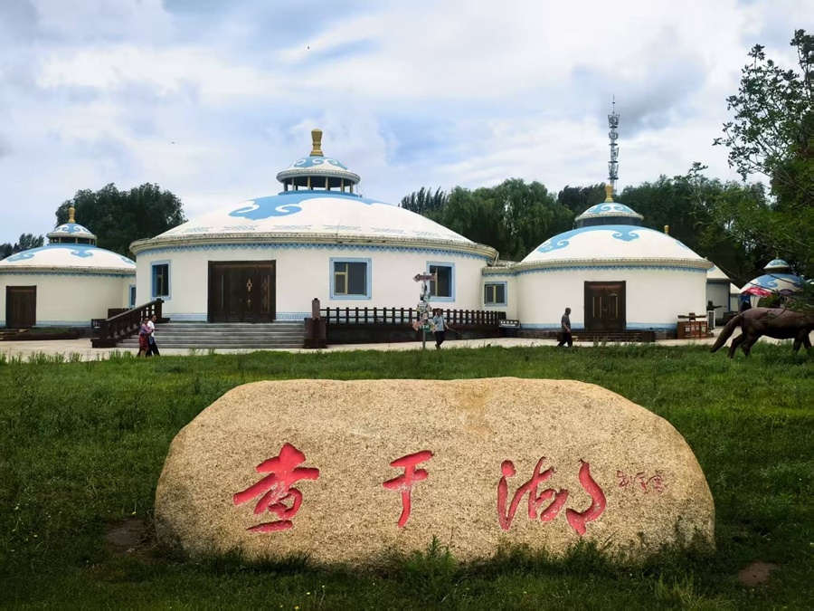 7月20日,查干湖景区内的蒙古包吸引游客驻足。新华网记者 唐斓 摄