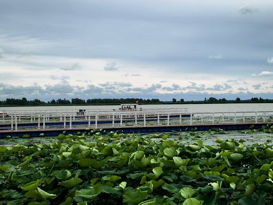 7月20日,微风徐徐,查干湖湖畔风景旖旎。新华网记者 唐斓 摄