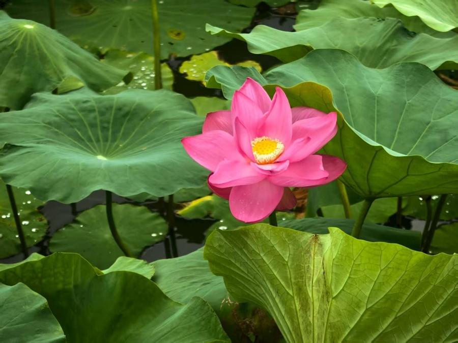 7月20日,查干湖中荷花盛开。新华网记者 唐斓 摄