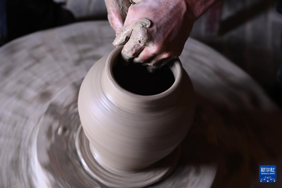 7月18日,在周宁县浦源镇萌源村月山古龙窑制作间,肖家涨在修坯制作传统硋器。新华社记者 姜克红 摄