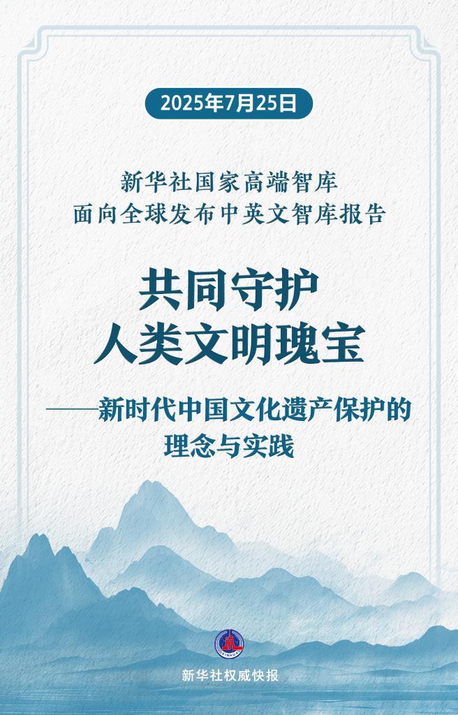 7月25日,新华社国家高端智库在河南郑州举行的上海合作组织媒体智库峰会上发布《共同守护人类文明瑰宝——新时代中国文化遗产保护的理念与实践》智库报告。
