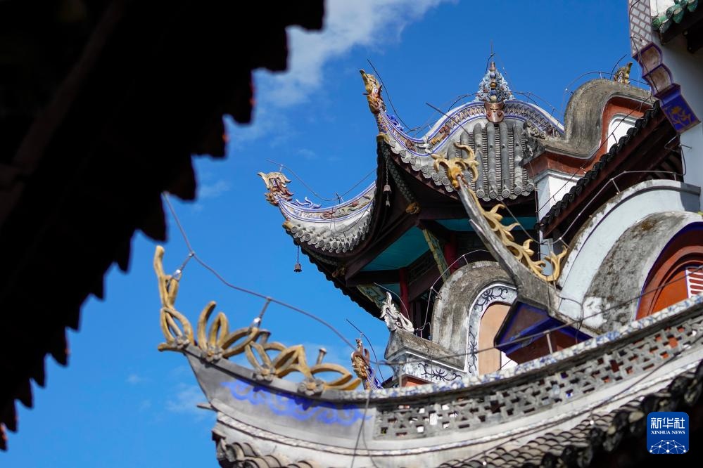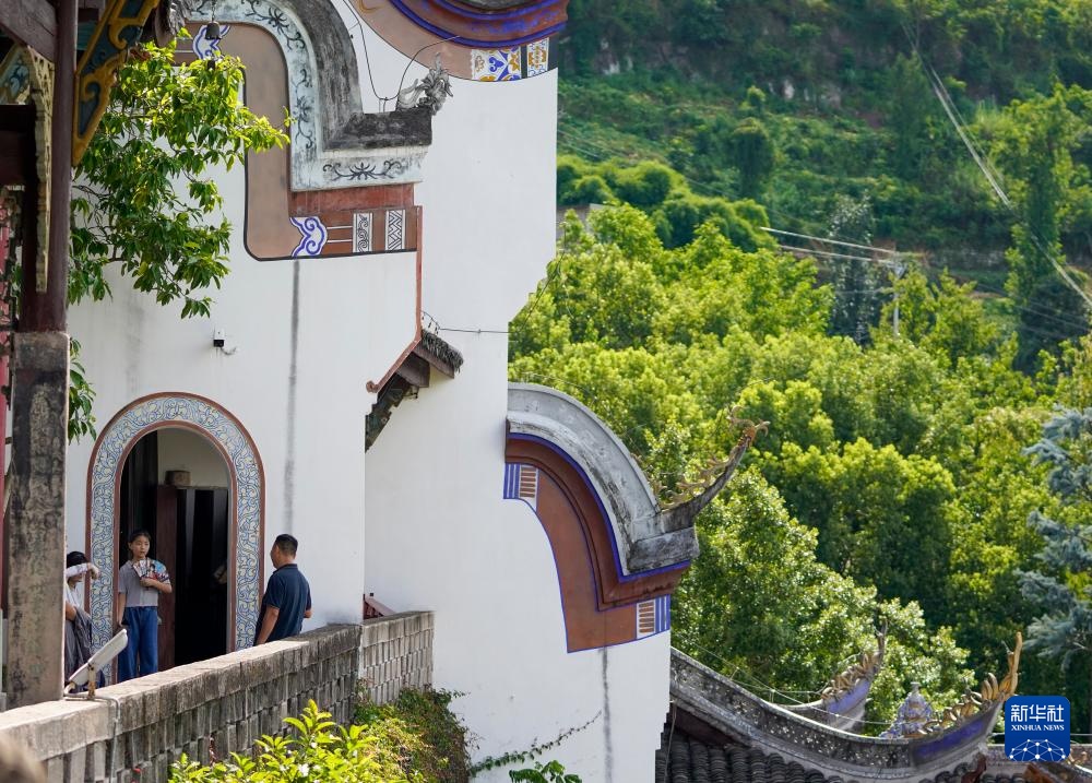 7月24日,游客在重庆云阳张飞庙内参观游览。新华社记者 刘潺 摄