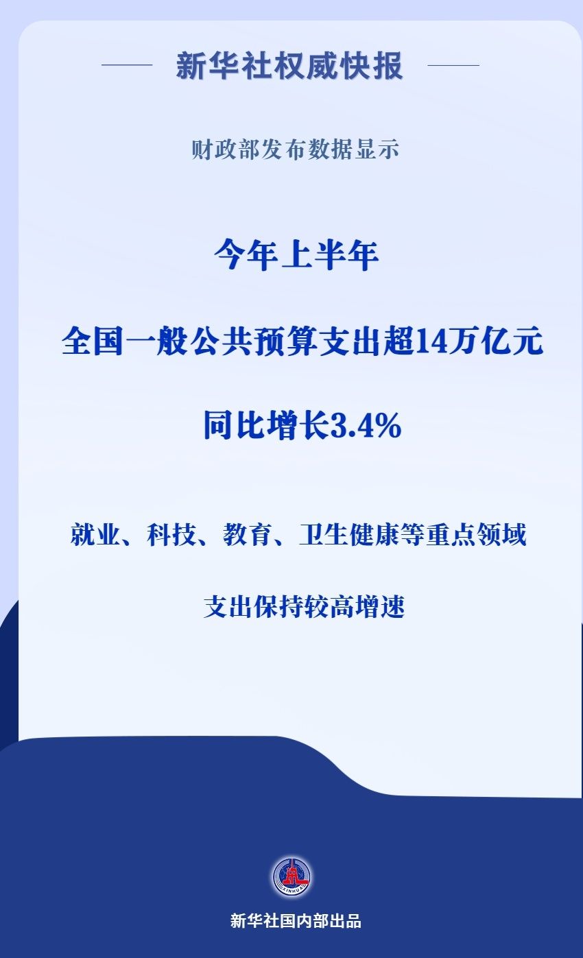 财政部7月25日发布数据显示,2025年上半年,全国一般公共预算支出141271亿元,同比增长3.4%。