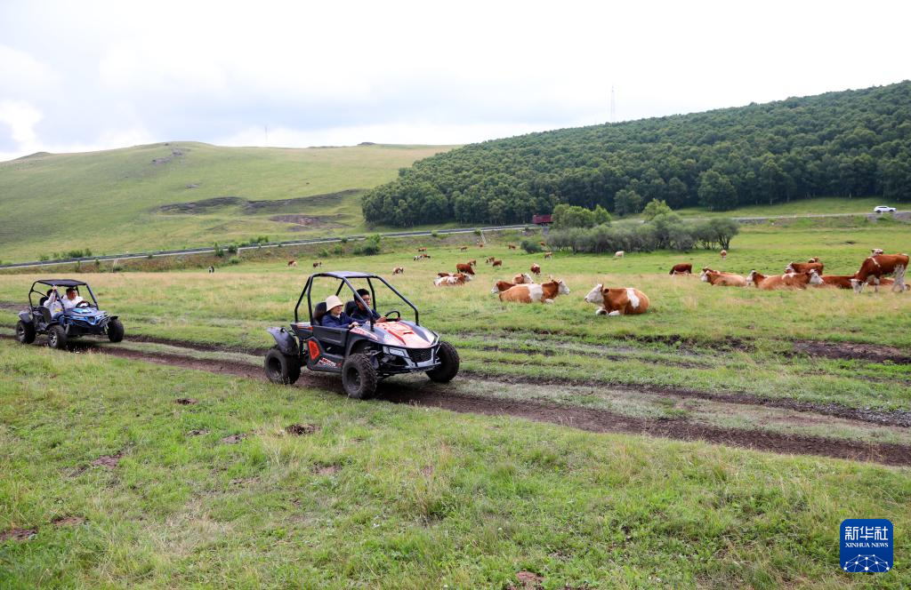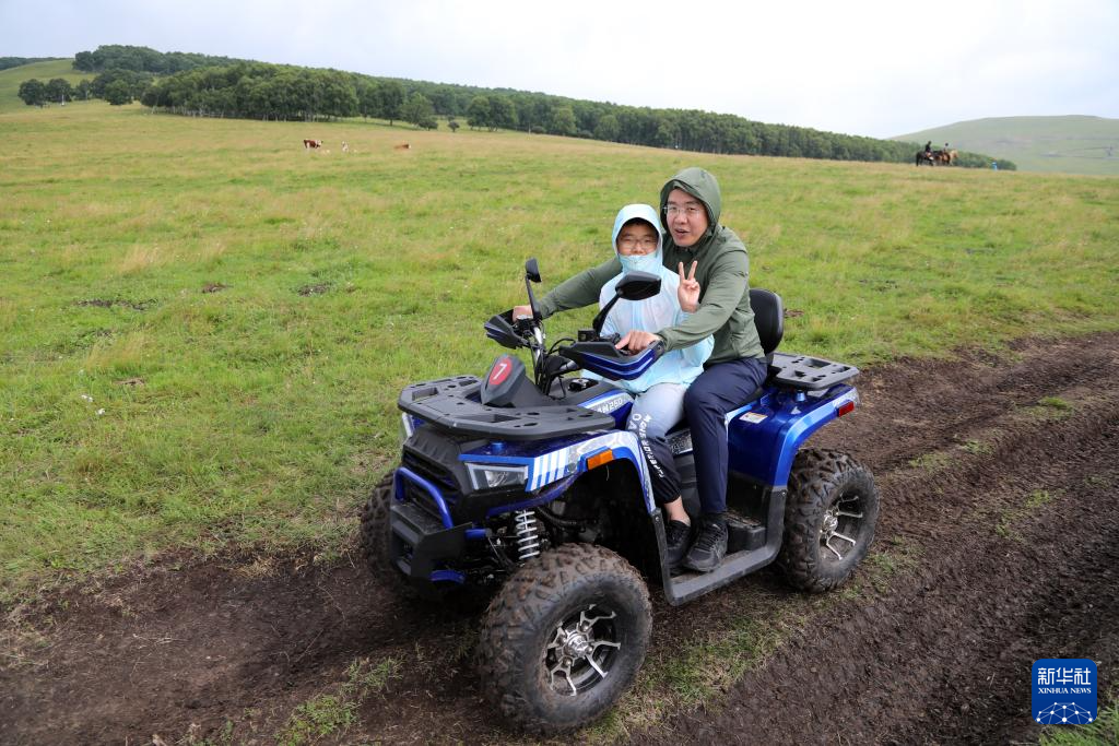7月24日,游客在内蒙古自治区赤峰市克什克腾旗草原驾乘草地车。新华社记者 侯俊 摄