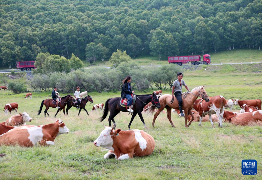 水草丰美的内蒙古大草原正值暑期旅游旺季,吸引各地游客纷至沓来,领略美丽风光。