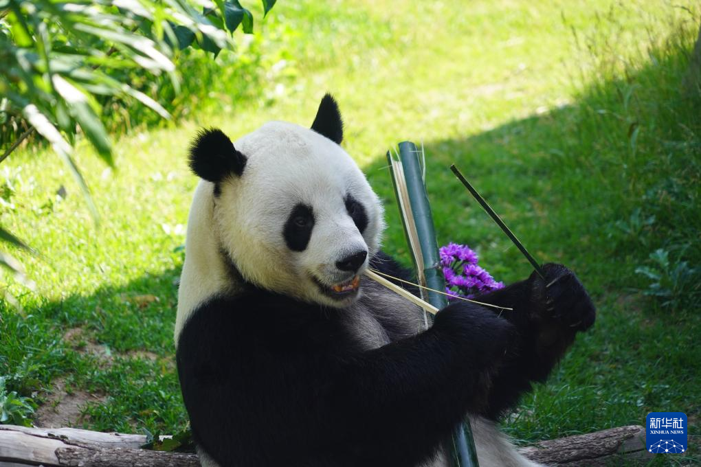 7月26日,大熊猫“双欣”在西宁熊猫馆进食。新华社记者 耿辉凰 摄