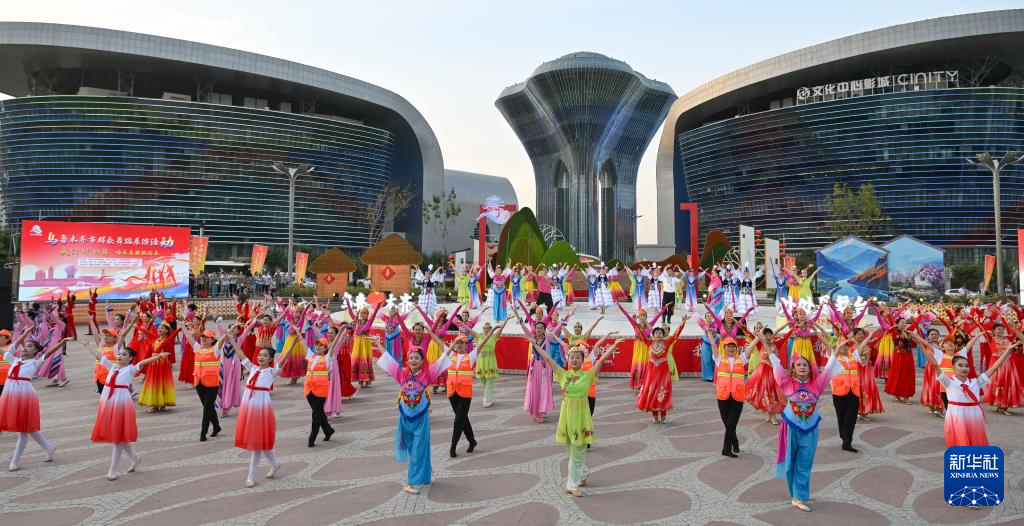 乌鲁木齐市天山区的舞蹈队表演舞蹈《京润村舞·韵在天山》(7月28日摄)。新华社记者 胡虎虎 摄
