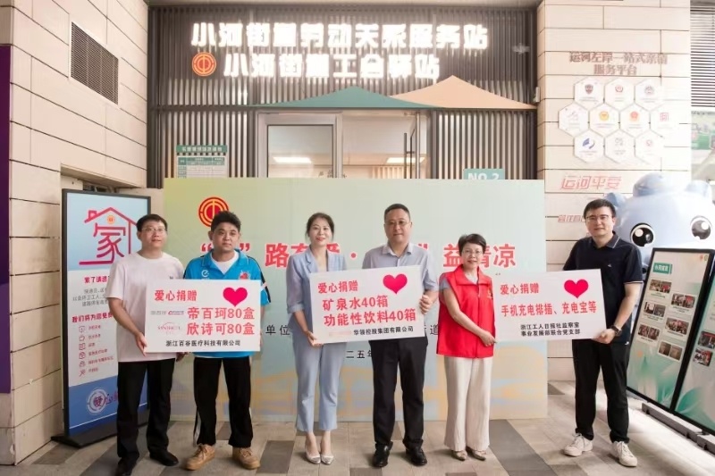 活动上,拱墅区总工会副主席林杰忠为小河街道商务社区联合工会颁发工会法人资格证书。小河街道党工委书记丁强、拱墅区总工会副主席林杰忠、小河街道总工会主席吴斌等为新就业形态劳动者代表送上慰问清凉大礼包,还有晒后修复面膜等,希望他们在夏日酷暑中感受到小河关爱的一丝清凉。现场还提供免费理发、法律咨询、心理健康沙龙等公益服务。