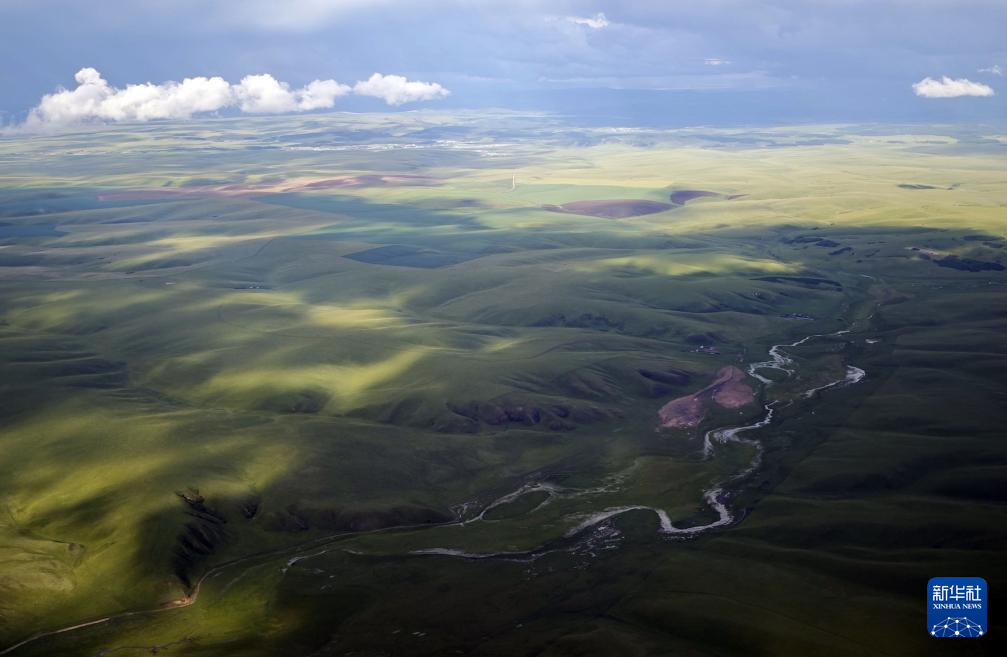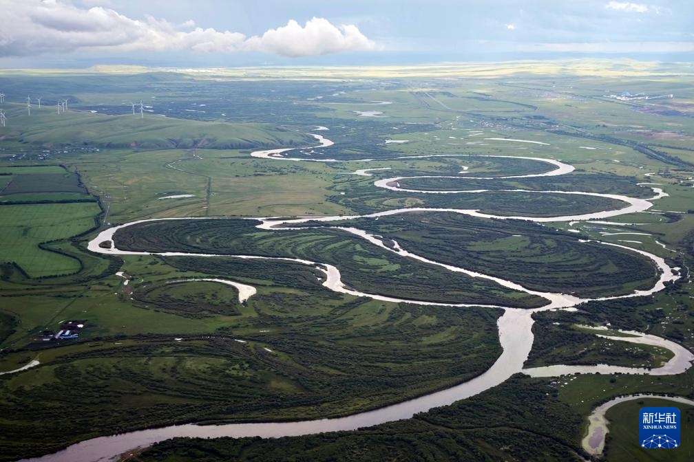 内蒙古呼伦贝尔草原上的河流(7月29日摄,手机照片)。新华社记者 贾立君 摄