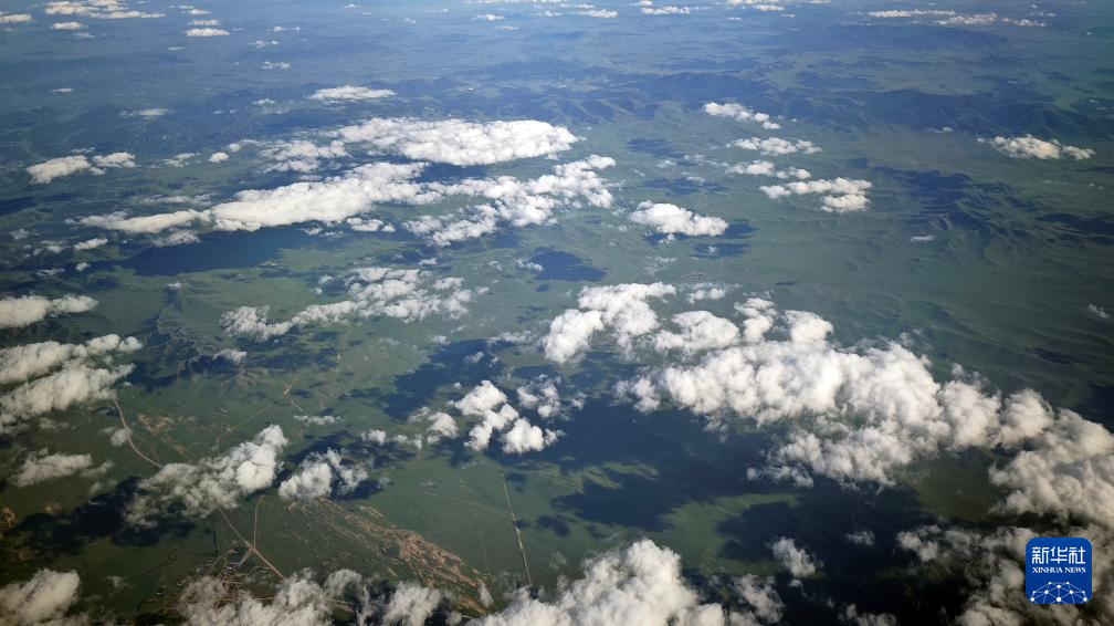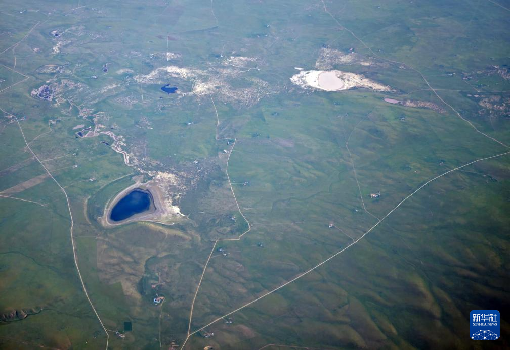 内蒙古锡林郭勒草原上的湖泊(7月29日摄,手机照片)。新华社记者 贾立君 摄