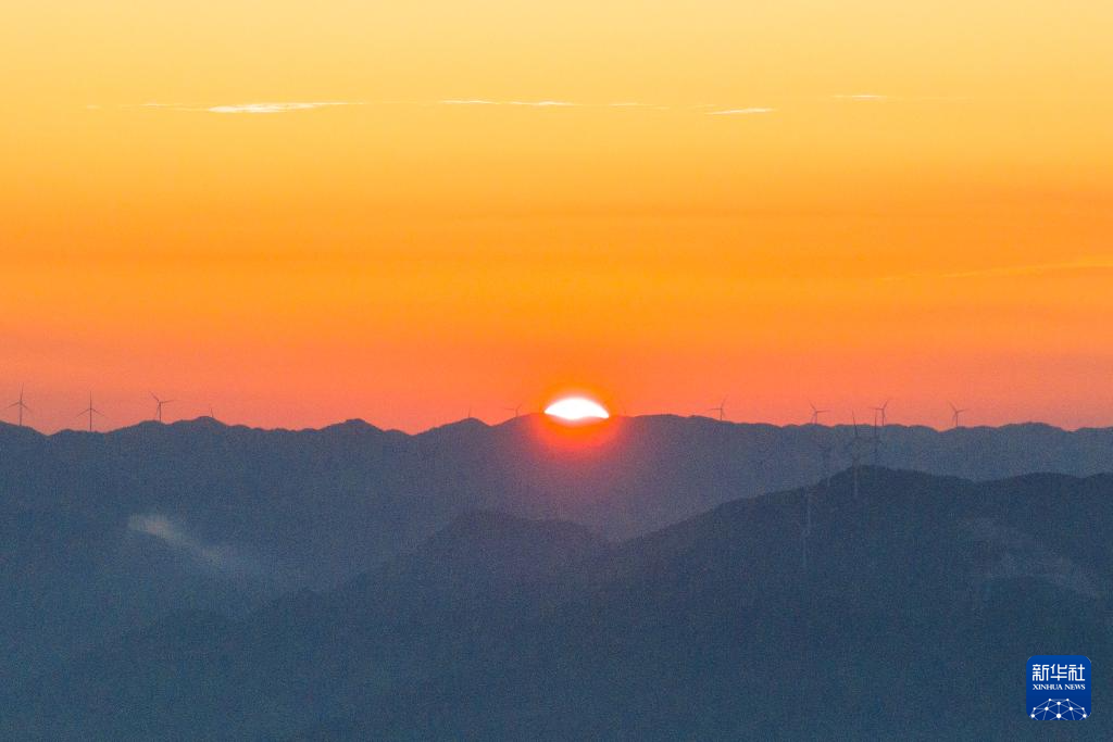 这是7月30日在湖南怀化雪峰山国家森林公园拍摄的日出景观(无人机照片)。新华社记者 陈思汗 摄