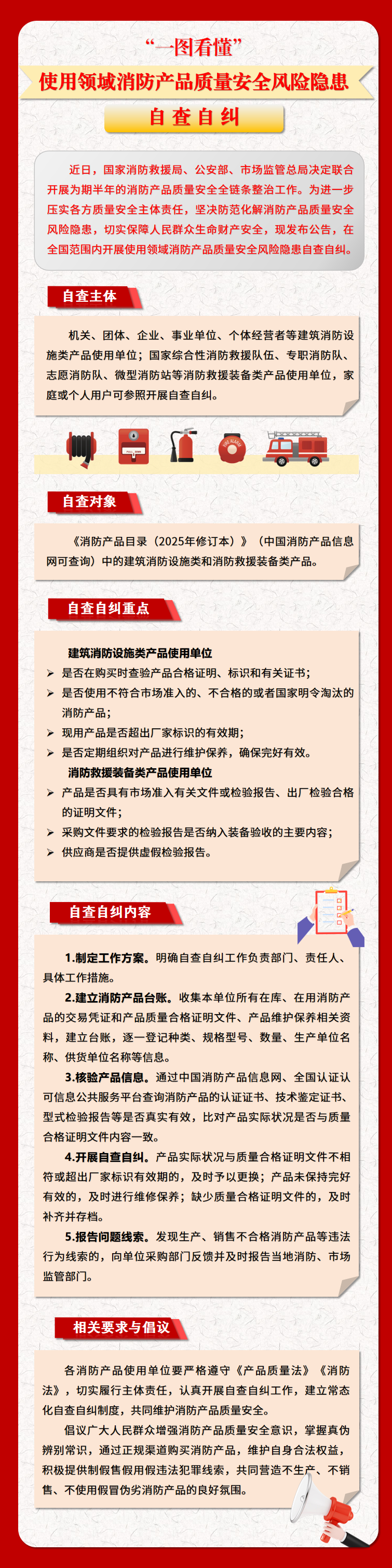 据悉,此次整治聚焦手提式灭火器、过滤式消防自救呼吸器、洒水喷头、防火门等20余种与社会公众安全和灭火救援成效关联密切的产品,覆盖生产、流通、使用、认证检验等领域。生产领域紧盯产业聚集区和多次抽检不合格企业;流通领域强化产品销售集中区和网络交易平台监管;使用领域重点关注人员密集场所;认证检验领域严查自愿性产品认证机构、获得相关资质的检验检测机构违法违规行为。