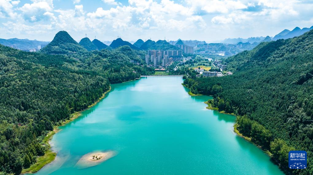 这是7月30日拍摄的六盘水市钟山区瑶池公园风光(无人机照片)。新华社记者 陶亮 摄