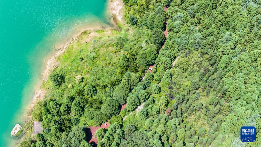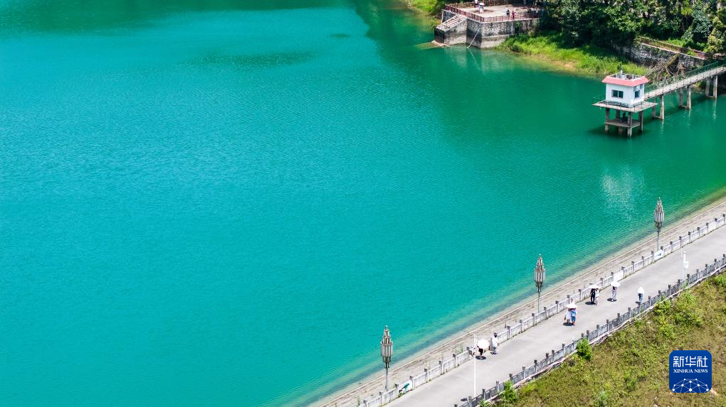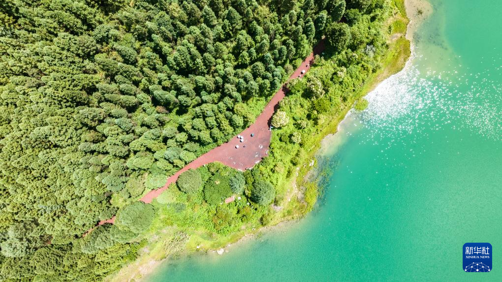 7月30日,游客在瑶池公园栈道上漫步(无人机照片)。新华社记者 陶亮 摄