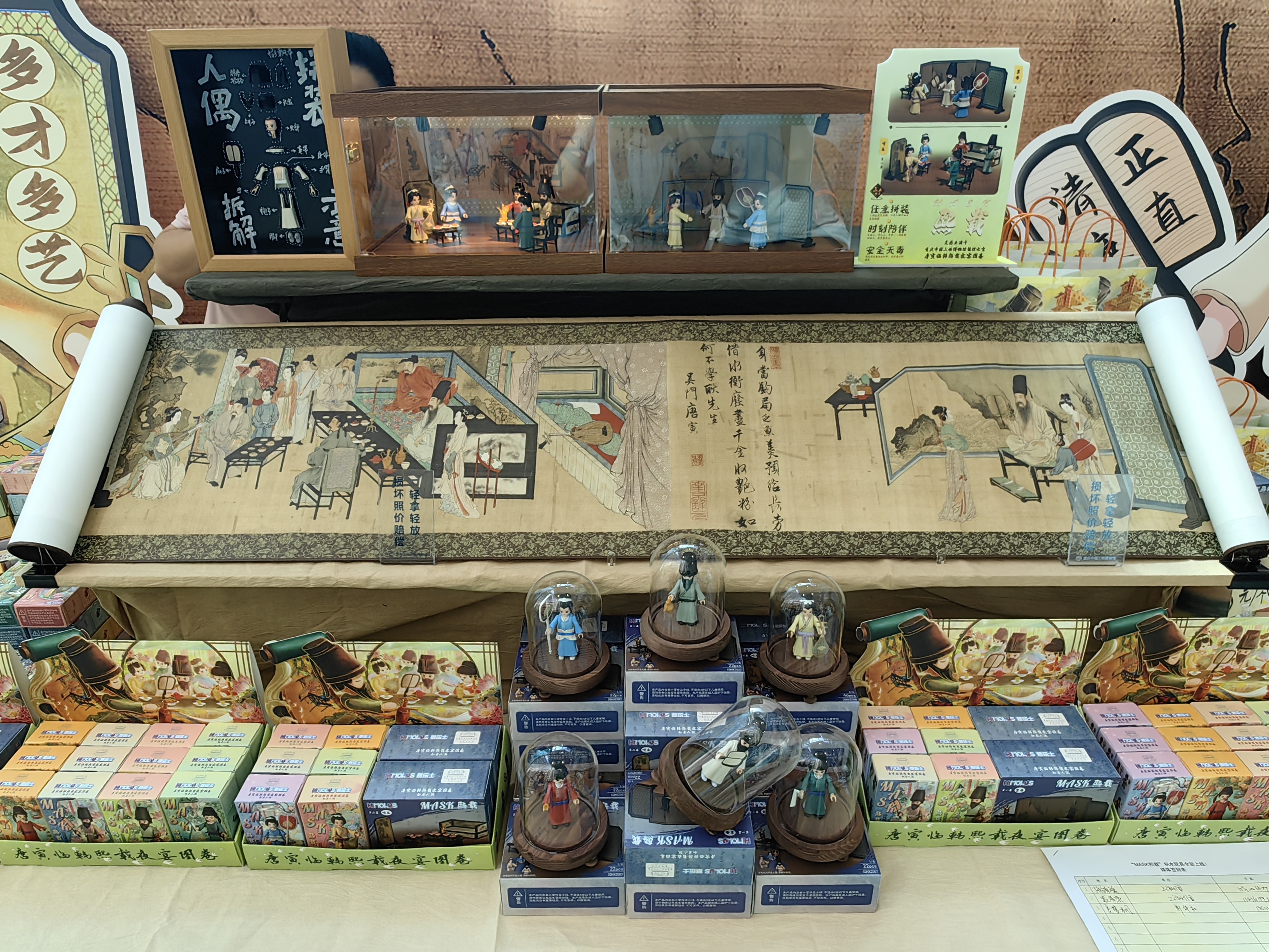 当唐伯虎的传世名画遇上现代积木,会碰撞出怎样的火花?日前,重庆中国三峡博物馆结合馆藏名画《唐寅临韩熙载夜宴图卷》,与商业品牌联合推出文物衍生积木人偶“MASK熙载”,开售首日就吸引众多市民游客购买。