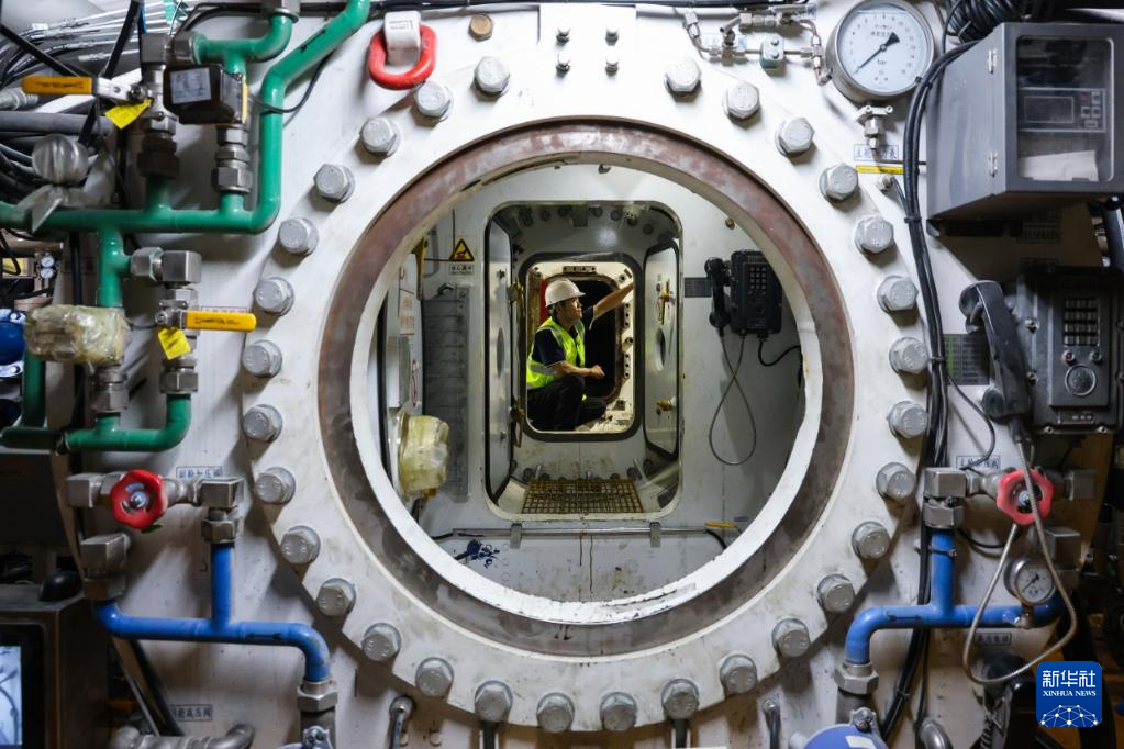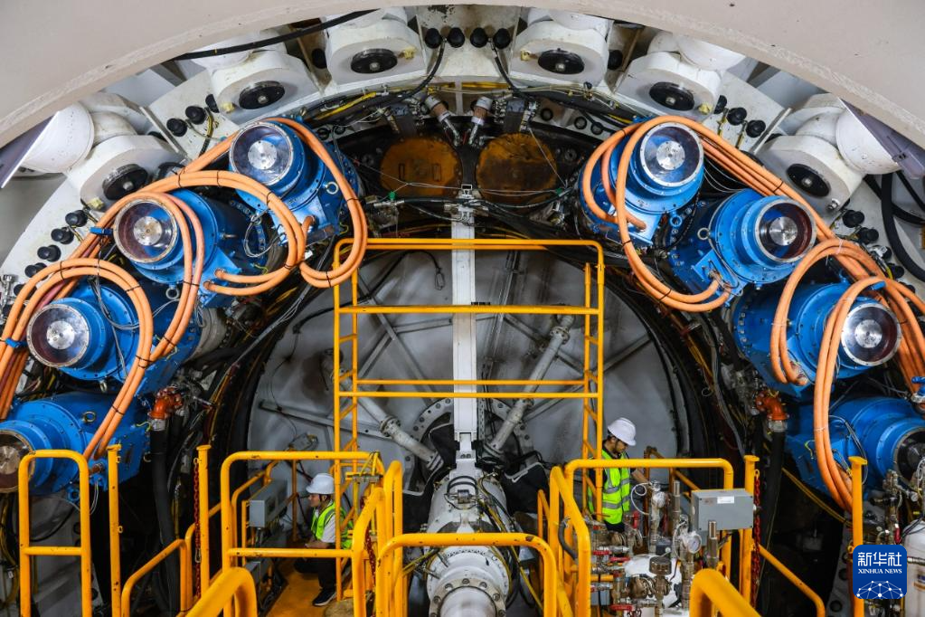8月1日,技术人员检查“坪山东3号”盾构机刀头舱设备状况。新华社记者 刘大伟 摄