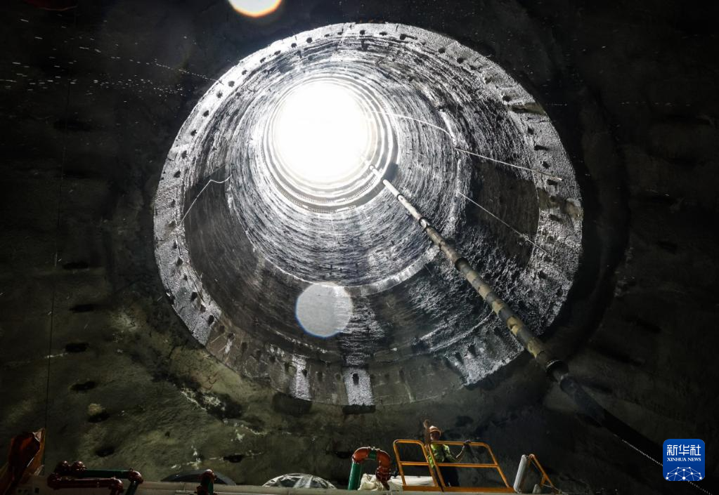 8月1日,施工人员为管片吊运机涂抹润滑脂。新华社记者 刘大伟 摄