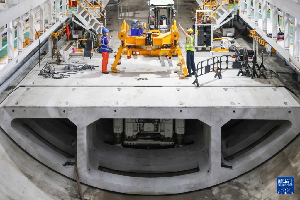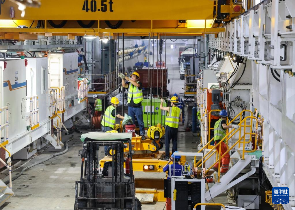8月1日,施工人员检查管片吊运机工作状况。新华社记者 刘大伟 摄