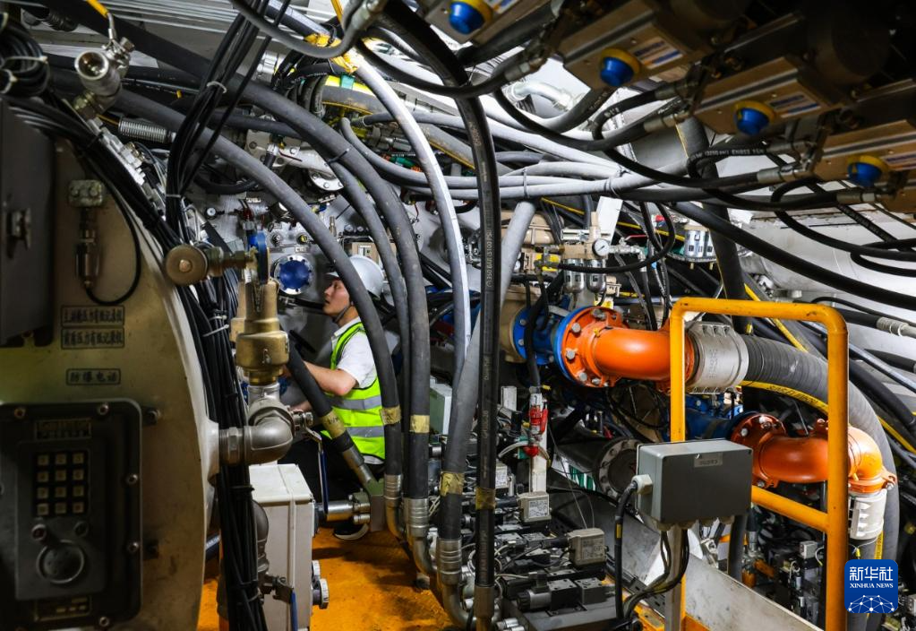 8月1日,技术人员检查“坪山东3号”盾构机设备状况。新华社记者 刘大伟 摄
