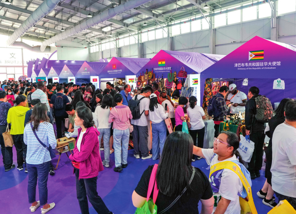 观众在服贸会首钢园区的“一带一路”共建国家特色文化展示 活动上参观(2024年9月15日摄)陈晔华摄/《瞭望》新闻周刊