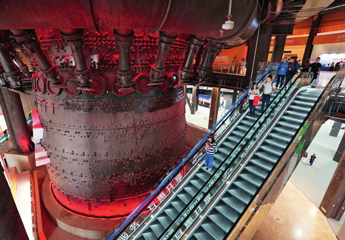 在首钢园四高炉内,服贸会参会人员从会议区离开(2024年9月13日摄)陈晔华摄/《瞭望》新闻周刊