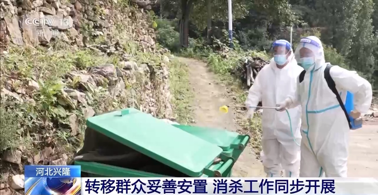 除了做好转移群众的安置工作,当地灾后防疫消杀工作也正在有序推进,在受灾较为严重的赵北沟村,疾控中心工作人员正在对村里的垃圾桶、圈舍、厕所等重点部位进行消杀,防止灾后疫情发生。