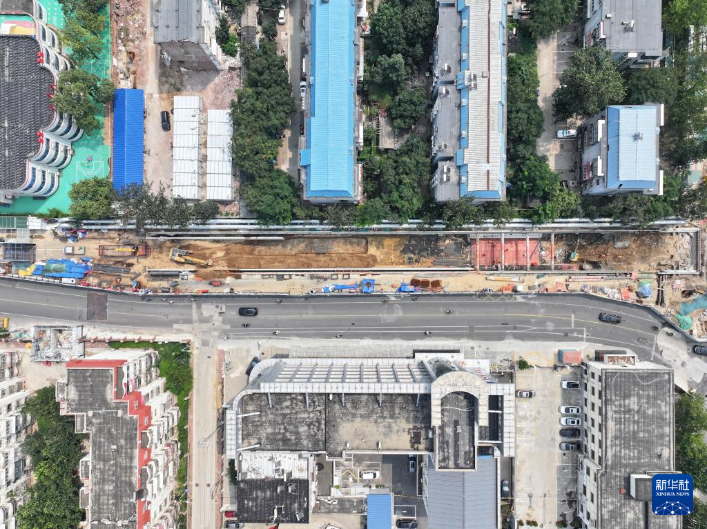 这是8月3日拍摄的石家庄市城市轨道交通5号线一期工程建设现场(无人机照片)。新华社记者 牟宇 摄