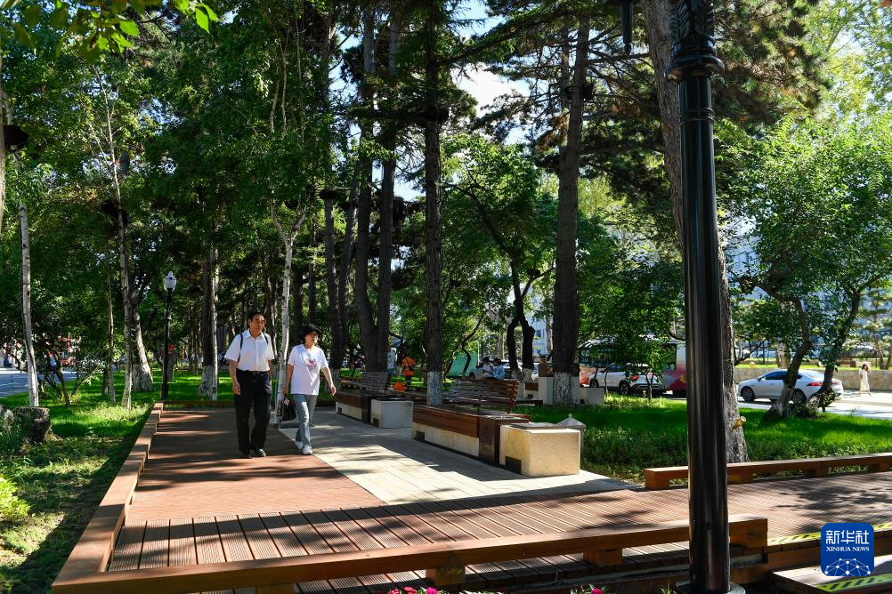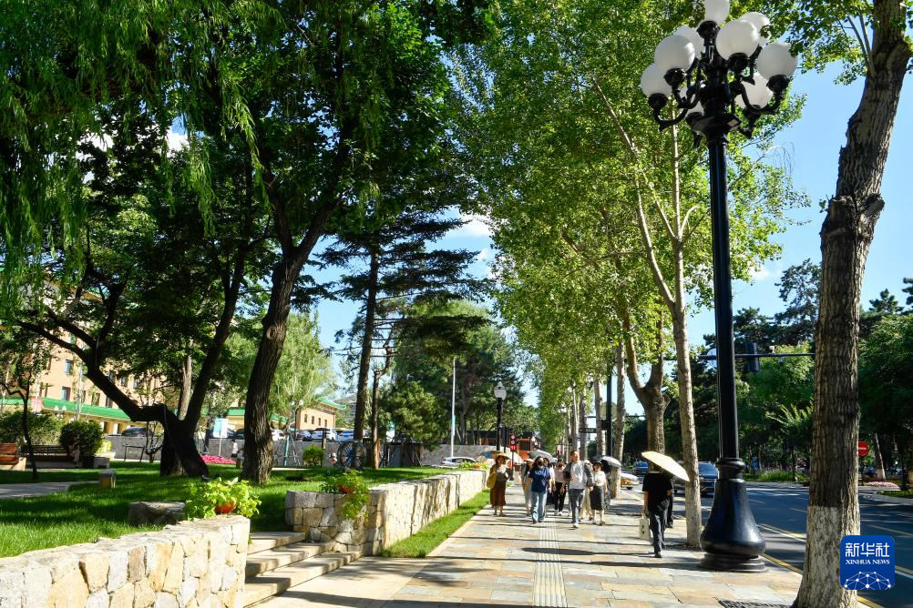 7月30日,游客游览长春新民大街。新华社记者 张楠 摄