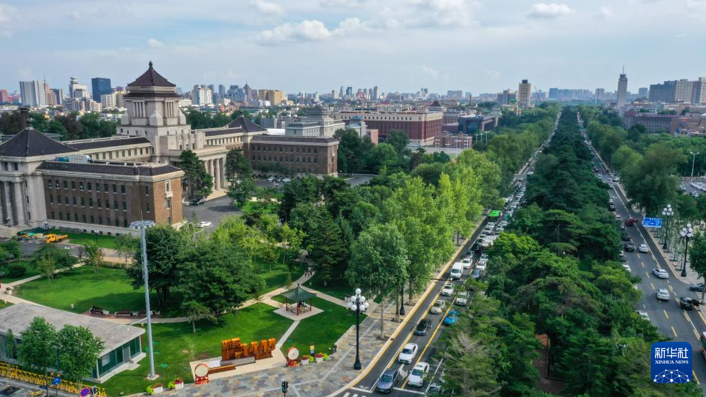 7月30日拍摄的长春历史文化博物馆和新民大街(无人机全景拼接照片)。新华社记者 张楠 摄