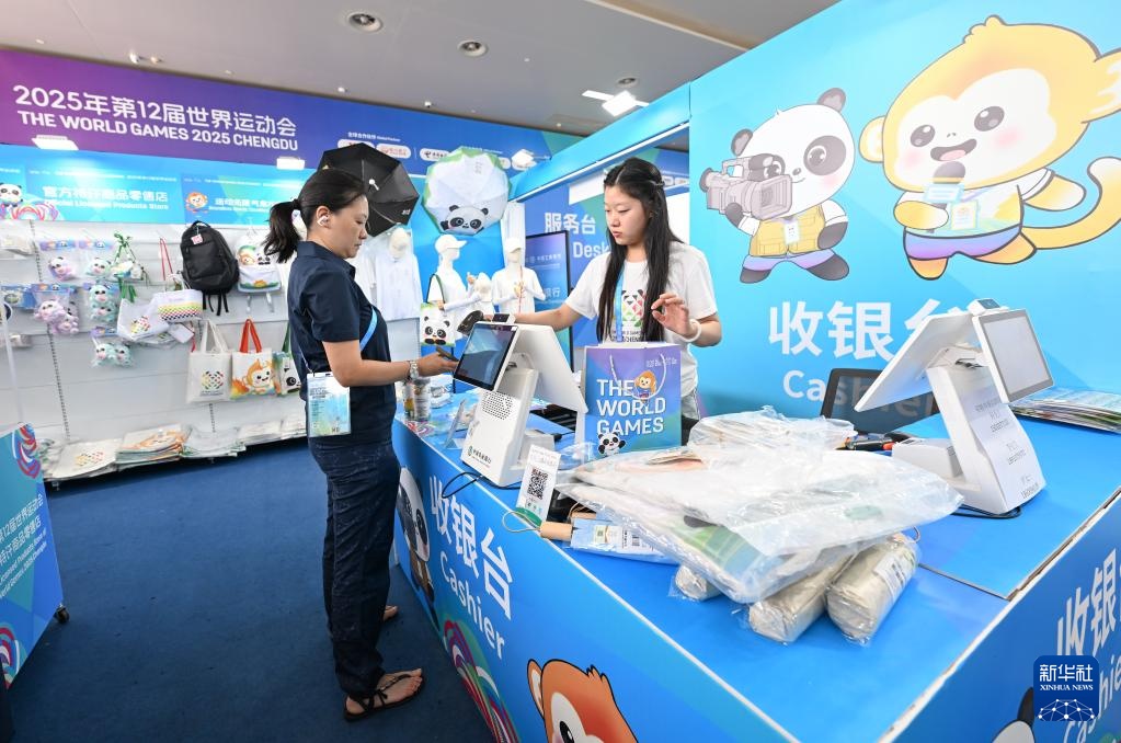 这是成都世运会主媒体中心官方特许商品零售店(8月4日摄)。新华社记者 贝赫 摄