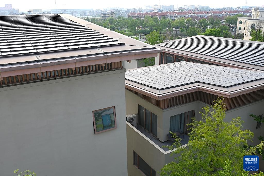这是8月4日在浙江省杭州市萧山区梅林村拍摄的民居屋顶光伏板。新华社记者 毛竹 摄