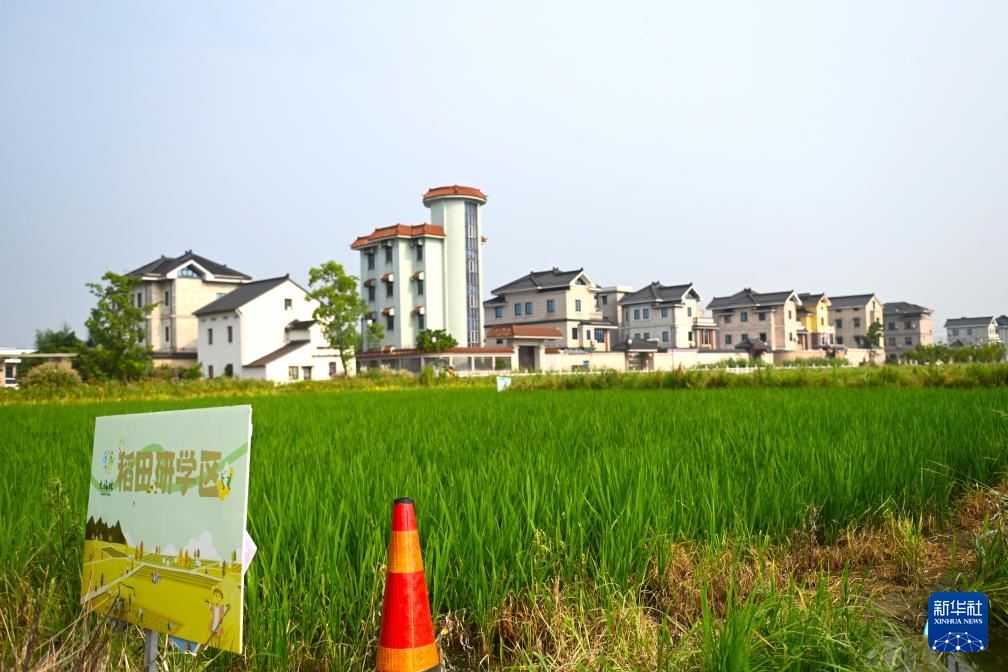这是8月4日在浙江省杭州市萧山区梅林村拍摄的稻田研学区。新华社记者 毛竹 摄
