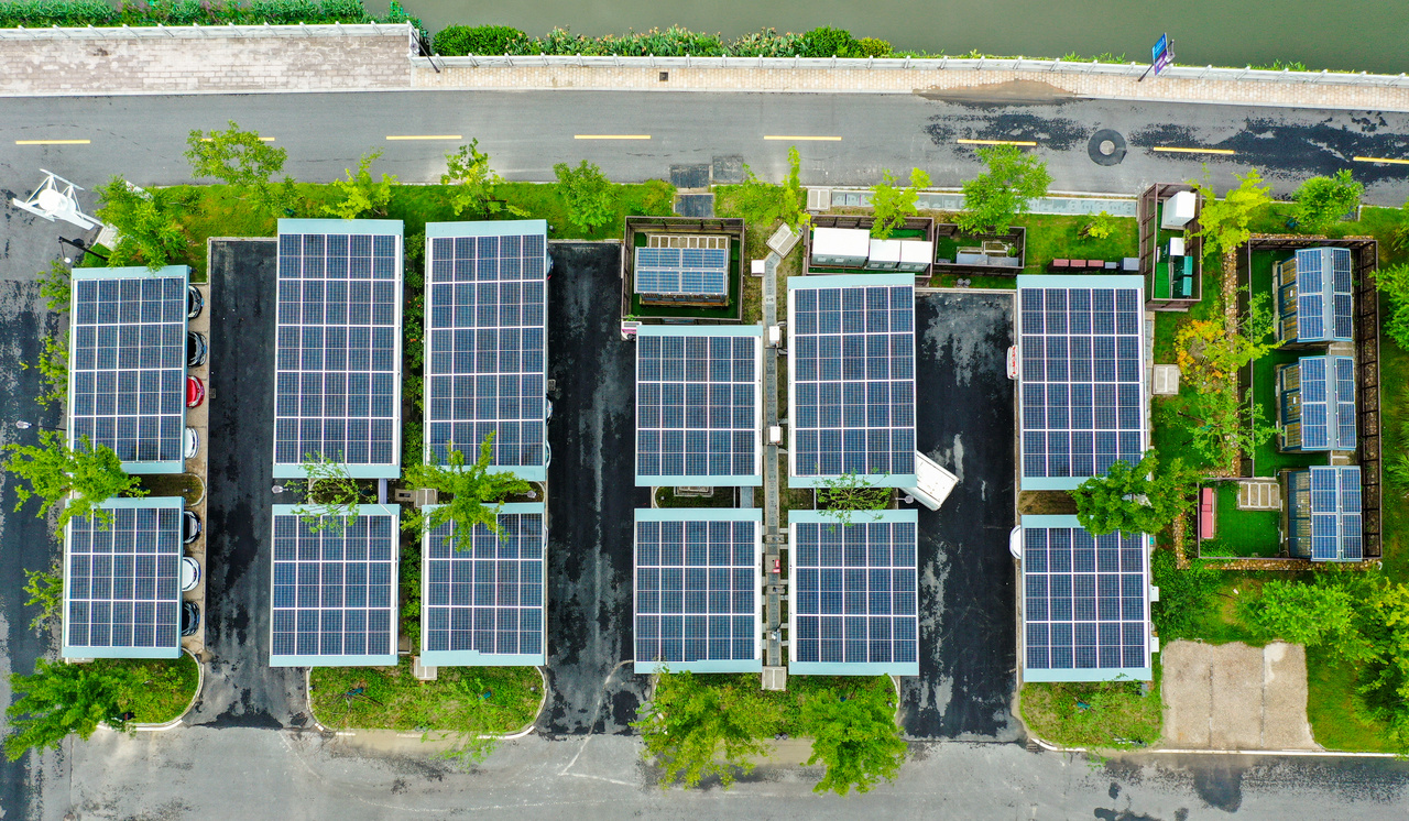 梅林村有2座光伏电站,一个位于村内的美好生活中心,另一个就是美好生活中心旁边的光充储一体化停车场。