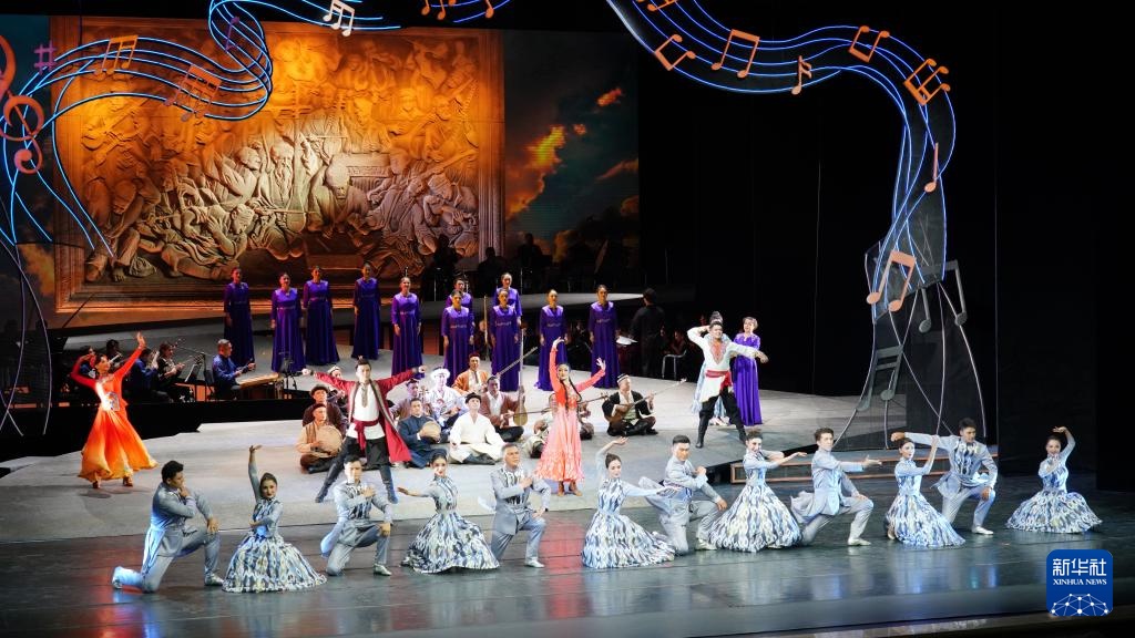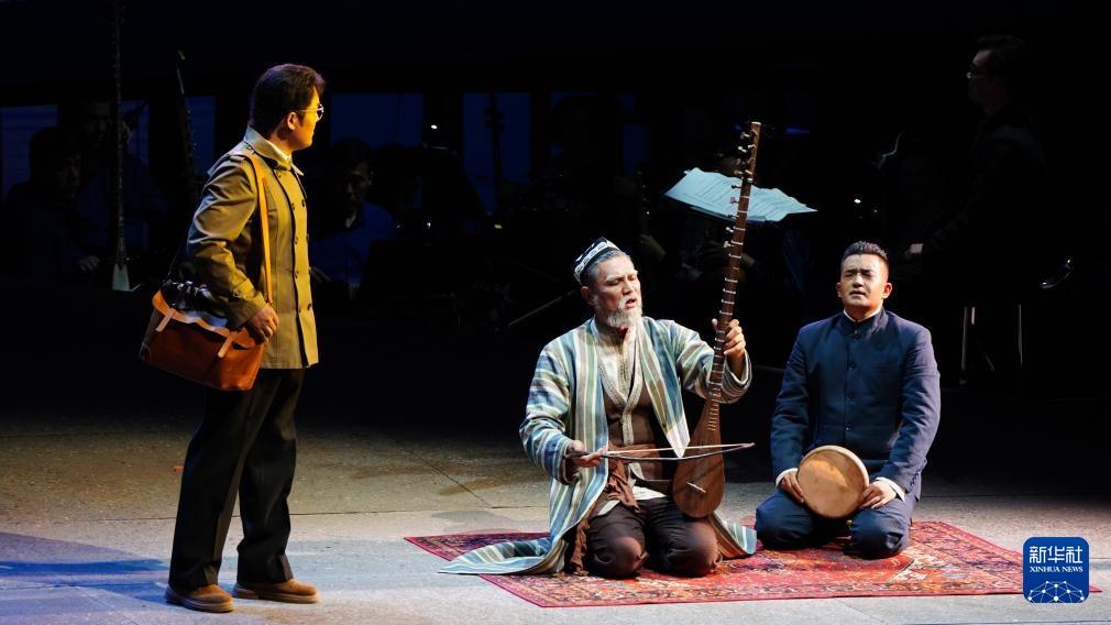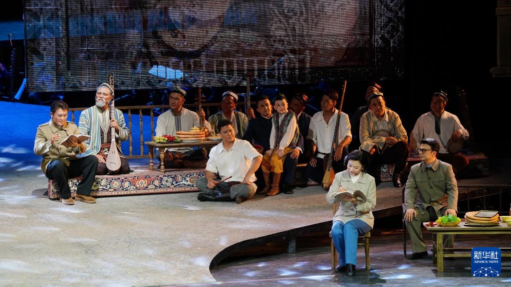8月4日,演员在表演歌剧《木卡姆恋歌——万桐书》。新华社记者 张啸诚 摄
