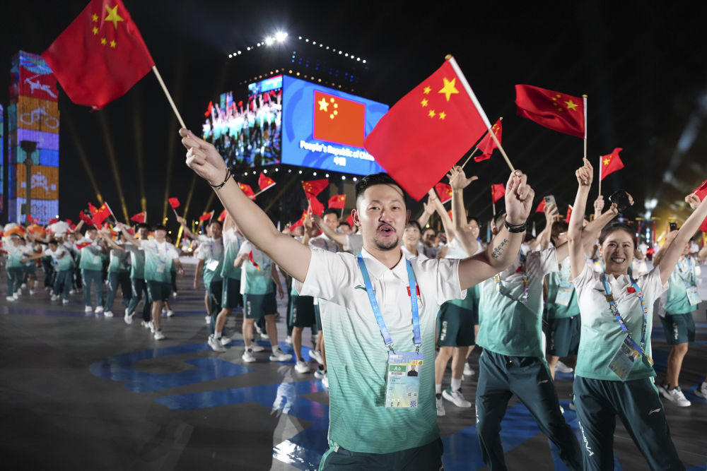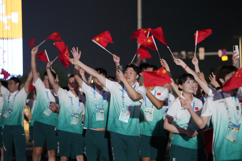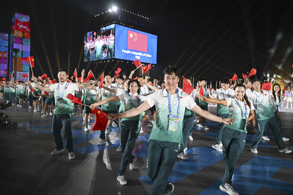 中国体育代表团在开幕式上入场。新华社记者 杜子璇 摄
