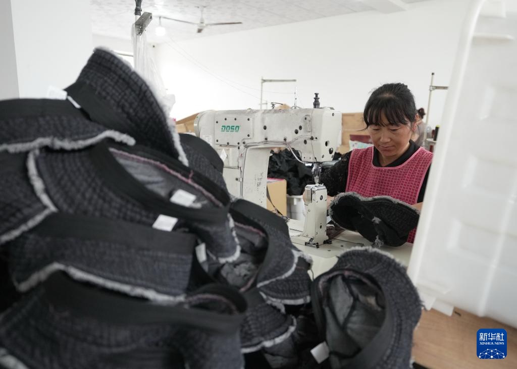8月8日,河北省昌黎县一家制帽企业的工人在生产车间工作。新华社记者 杨世尧 摄