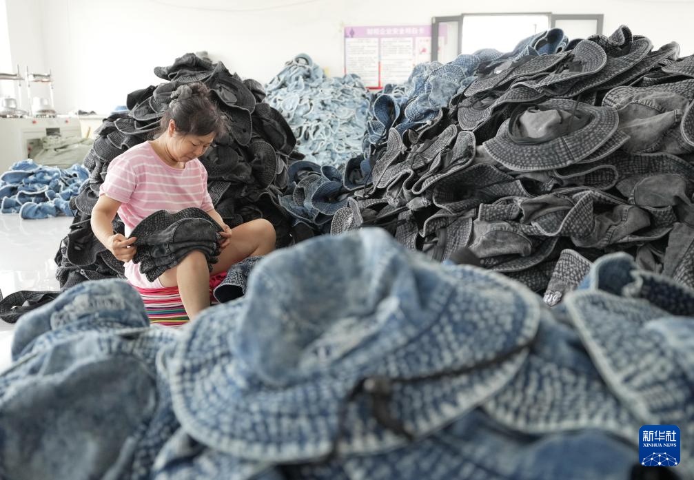 8月8日,河北省昌黎县一家制帽企业的工人在质检车间工作。新华社记者 杨世尧 摄