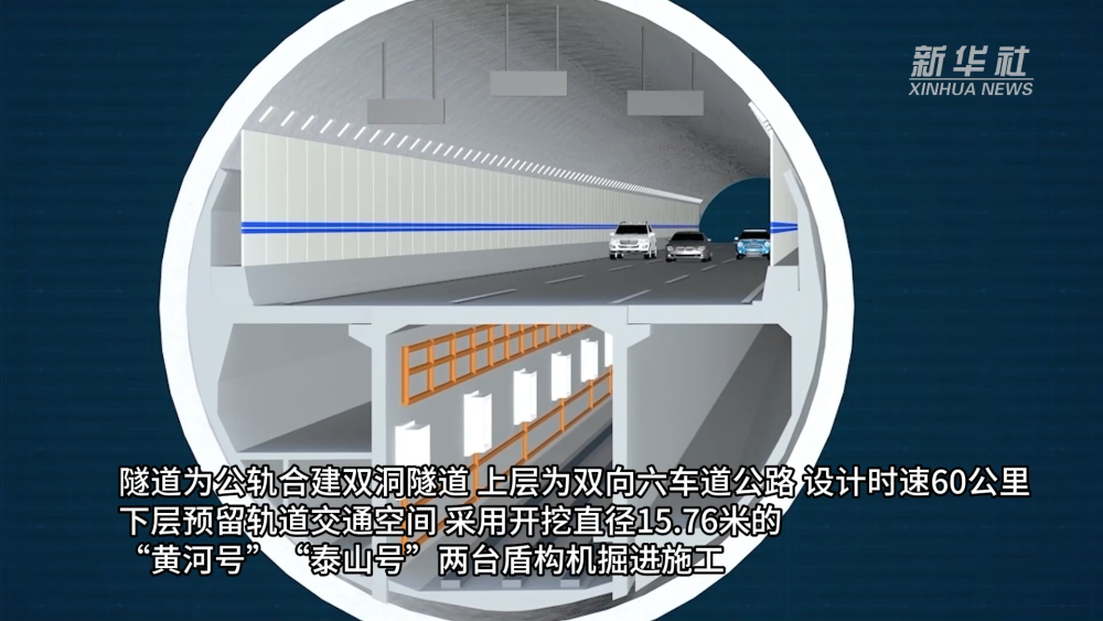 该隧道由济南城市建设集团投资建设、铁四院设计、中铁十四局施工,是“万里黄河第一隧”济南黄河济泺路隧道的延伸工程,全长4328米,其中盾构段长2045米。隧道为公轨合建双洞隧道,上层为双向六车道公路,设计时速60公里,下层预留轨道交通空间。