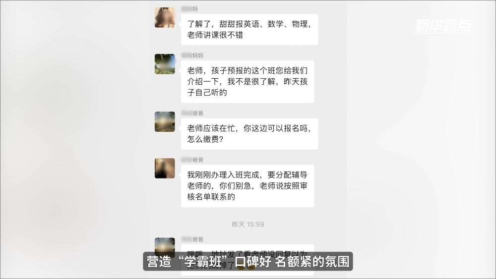 经过几天交流,助教老师开始推介其所在培训机构重点打造的“清北学霸班”,称其为“市面上能接触到最好的教育资源”,随后将记者拉入报名群中,并持续通过语音电话、留言等方式劝说记者报名。